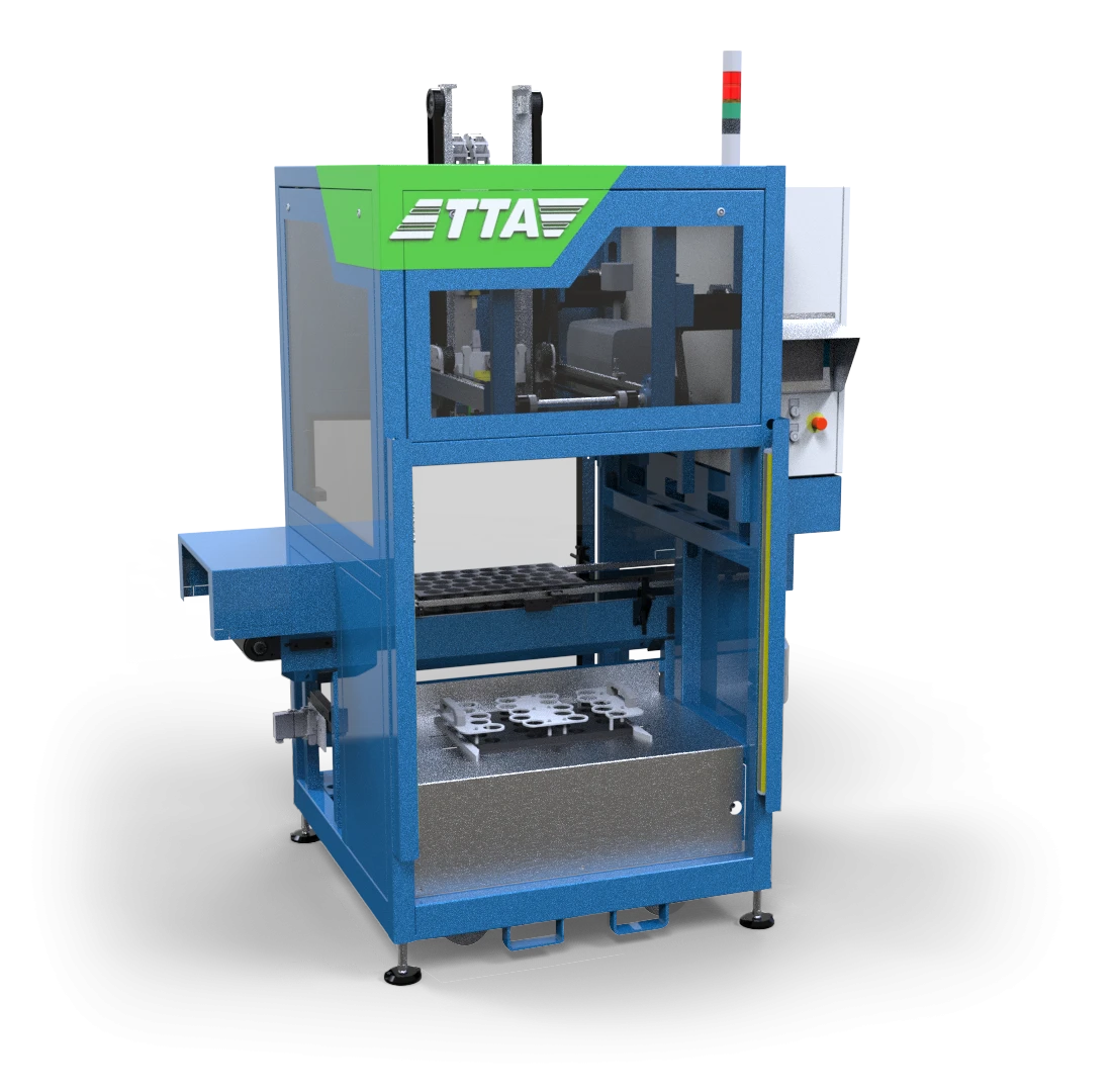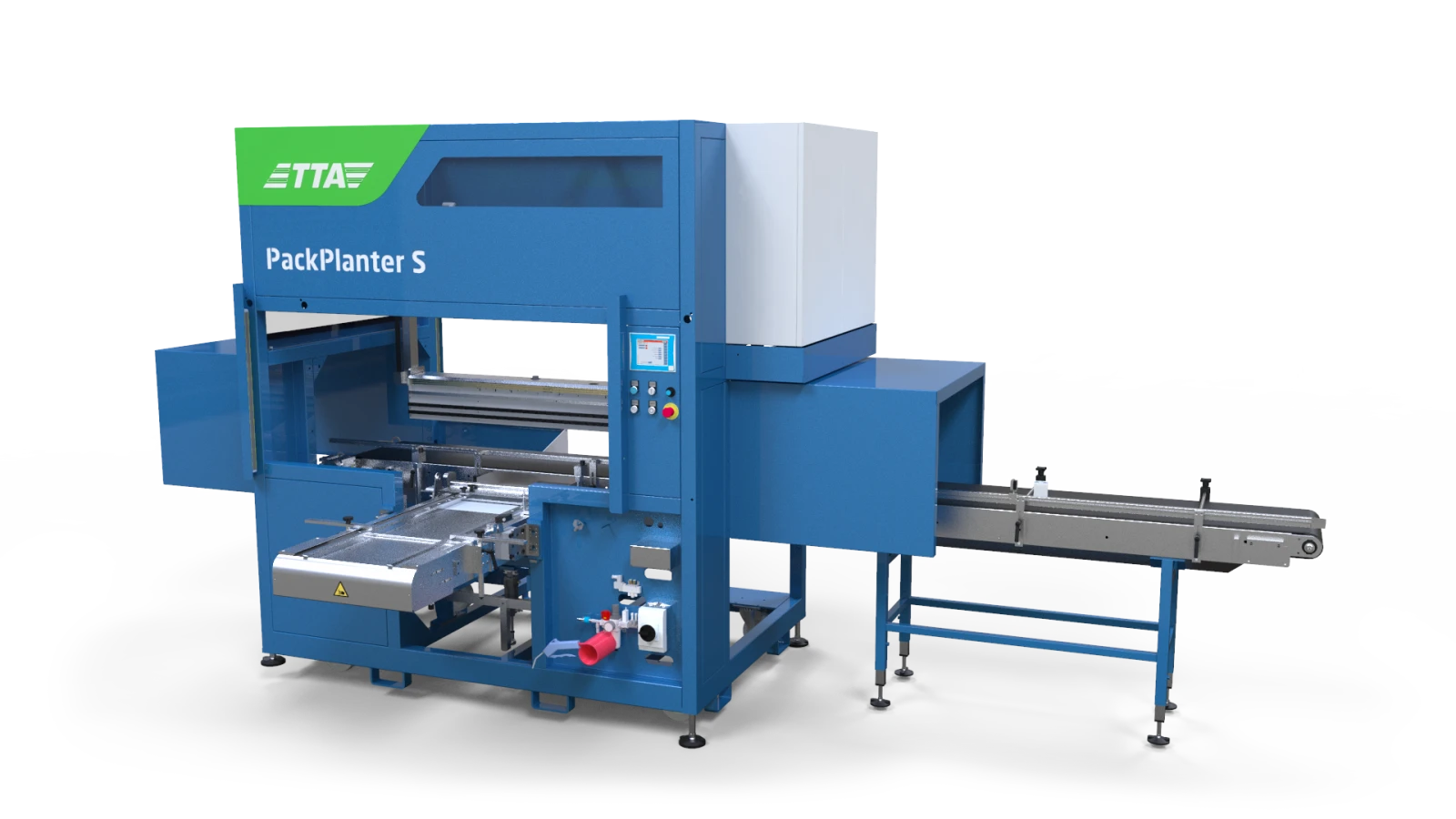 Automatische toepassing voor handgrepen op packs voor perkplanten.