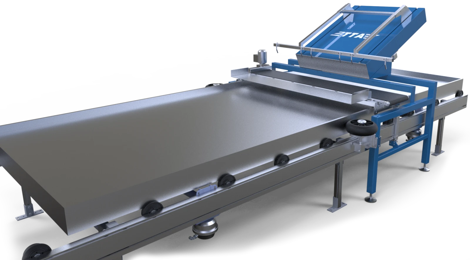 Een hoogwaardig transportsysteem in een roestvrijstalen lekbak.