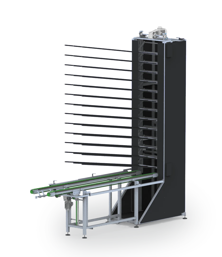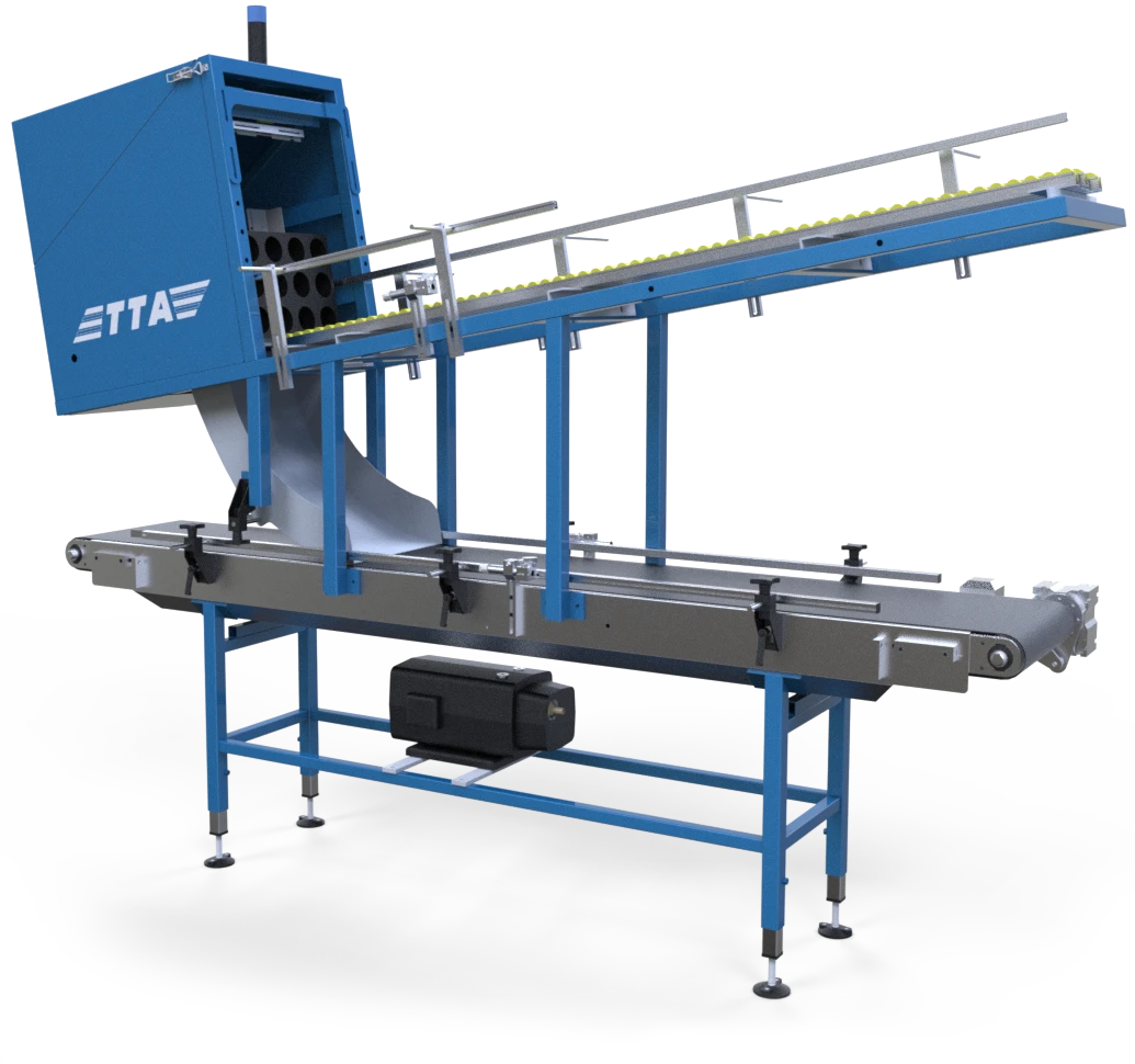 Een compacte machine voor het snel en nauwkeurig ontstapelen van potten.