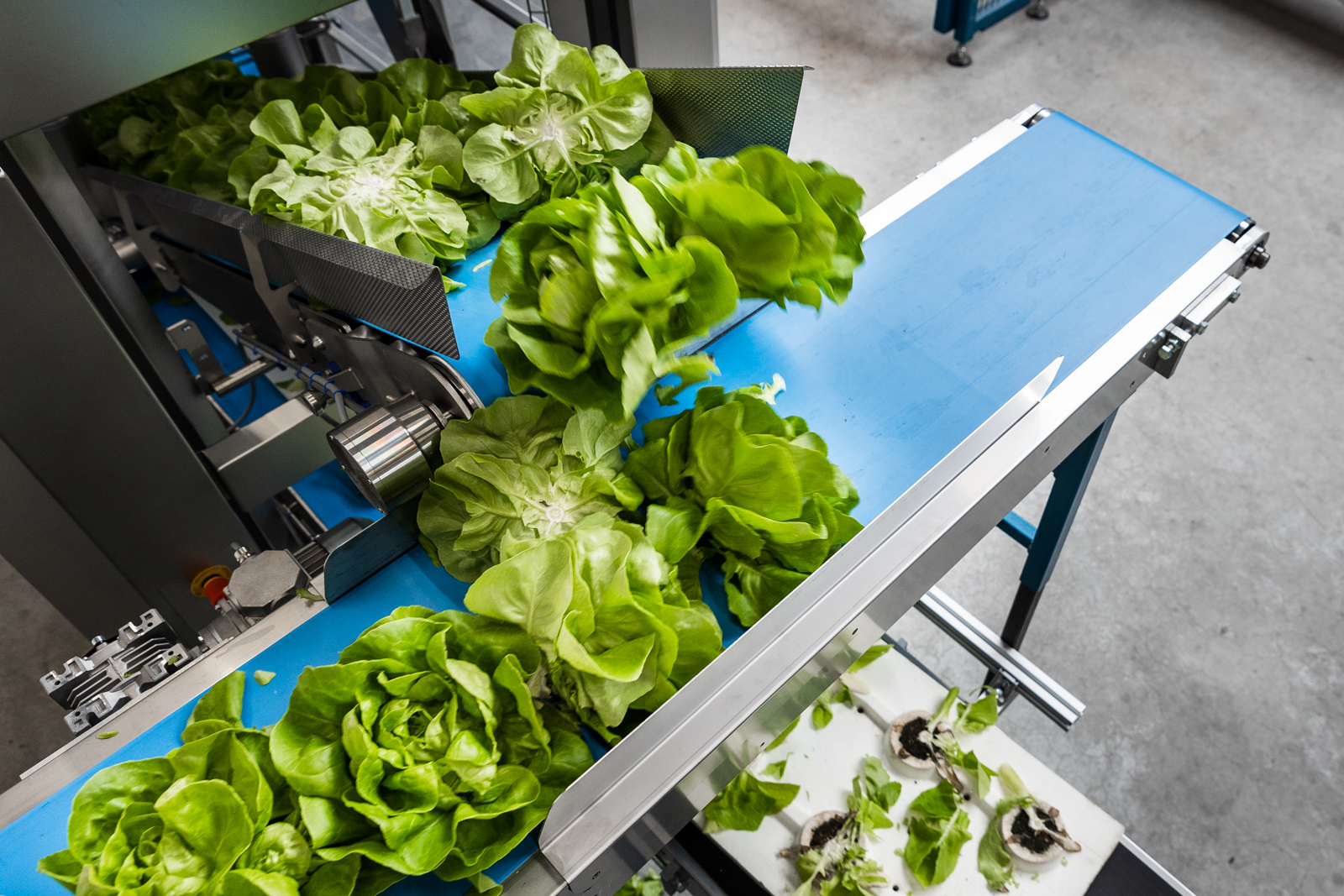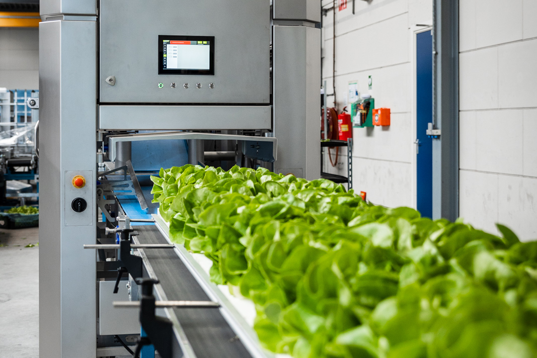 De bHarvest is een revolutionaire nieuwe manier om indoor geteelde gewassen te oogsten. De machine is uitgerust met meerdere aan- en afvoerende transportbanden en een innovatieve snijeenheid voor de verwerking van producten.