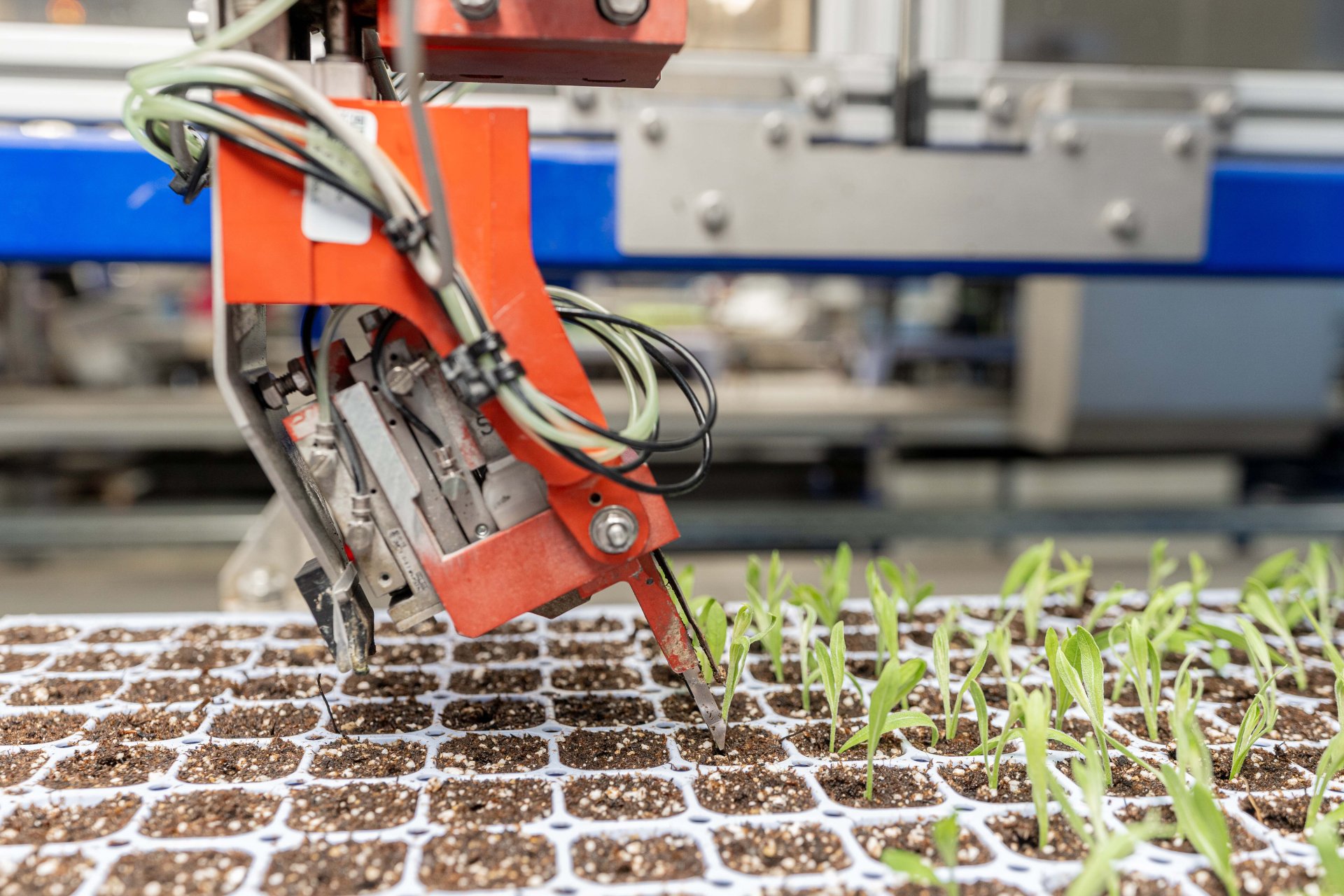 De Cutting Planter werkt even revolutionair als effectief. Op basis van zelflerende vision-software selecteert de robot de stekken en plant ze allemaal op gelijke diepte. Dit zorgt voor een perfect uniform plantresultaat. Tijdens het proces hoeven de stekken niet voorgeselecteerd te worden. Op deze manier kan elke machine tot 2.800 stekken per uur verwerken.