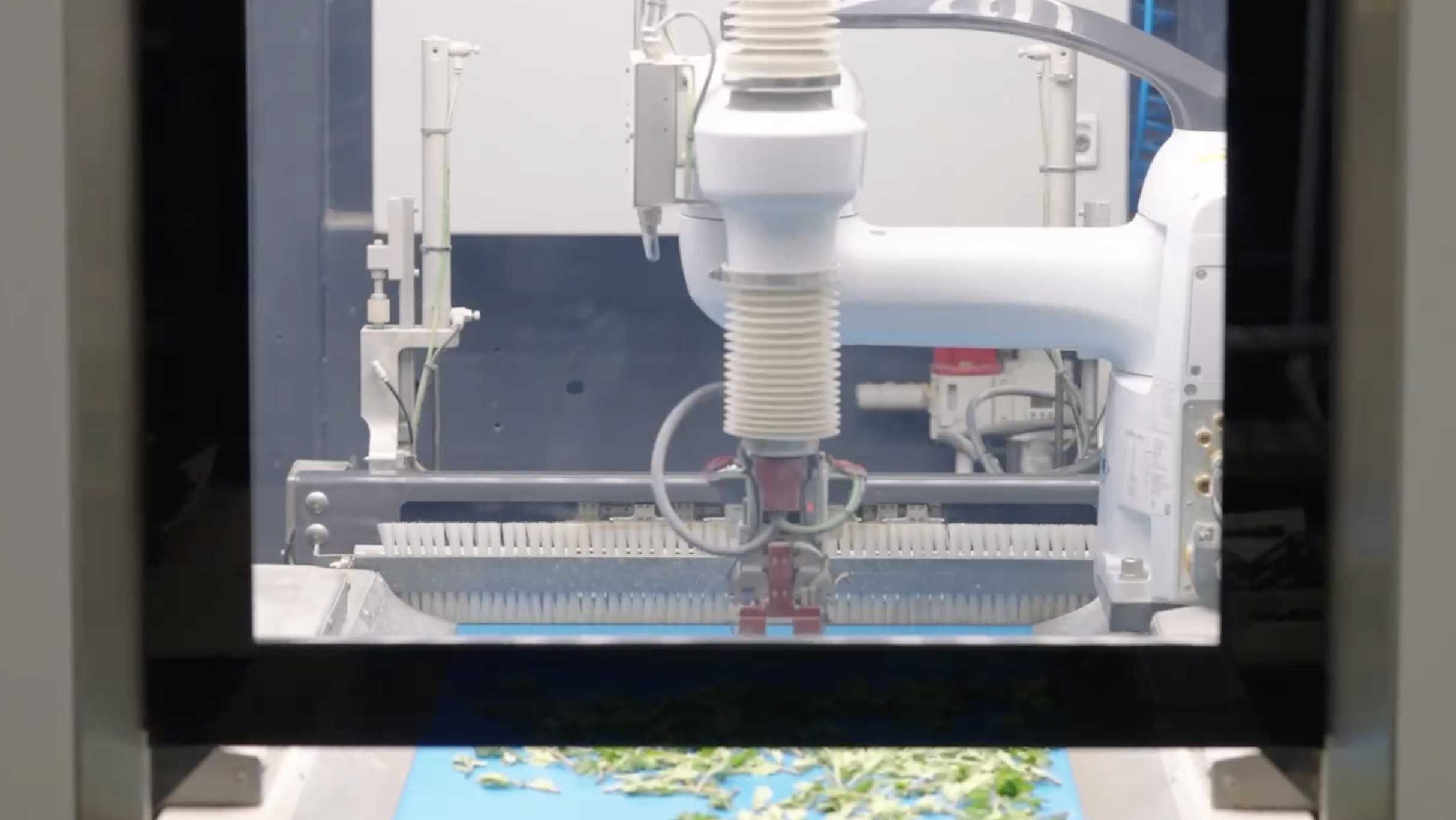 Het gebruik van de Cutting Planter 4000 is heel eenvoudig. De gebruiker legt het maaisel ongeordend op de band. De band schudt het maaisel vervolgens los, waardoor het afzonderlijke maaisel kan worden gelokaliseerd. De robot pakt het maaisel vervolgens één voor één op en plaatst het in de gerenoveerde maaibrug. Deze insteekbrug zorgt ervoor dat elke stek op de juiste lengte en recht in de insteekbrug terechtkomt. De insteekbrug plaatst de stekken vervolgens in het medium.