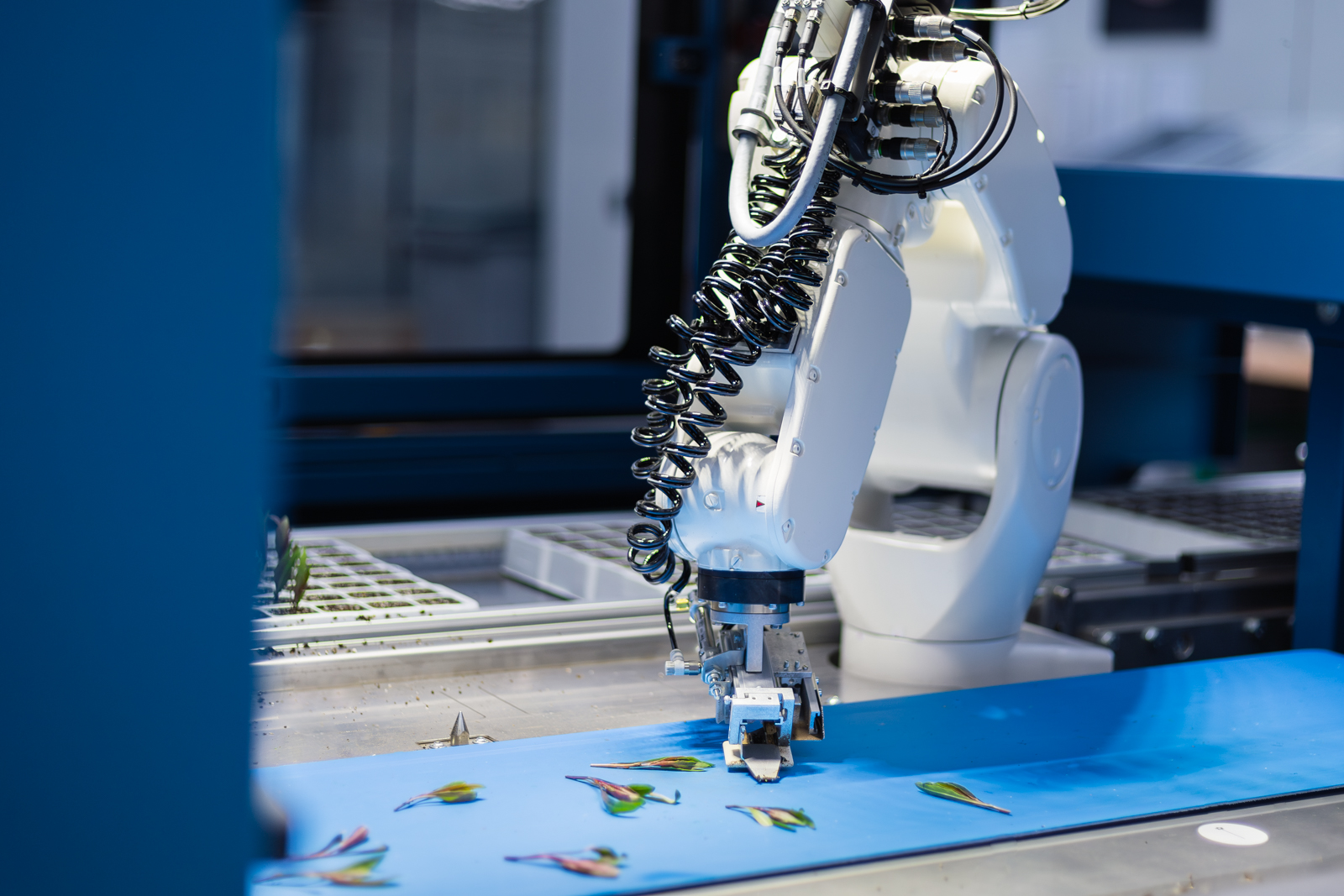 Het camerasysteem beoordeelt de stekken met het TTA-ISO CuttingVision systeem. Vervolgens worden alleen gekwalificeerde stekken met de robotarm in de pluggenbak geplaatst. Afgekeurde of dubbele stekken worden door een retoursysteem teruggestuurd naar de positie van de operator.
