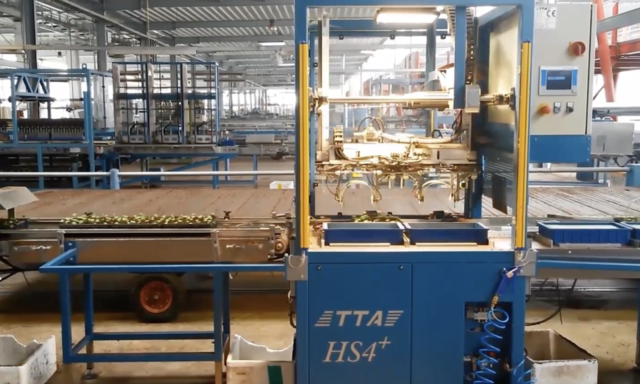 De HS4 is een automatische machine voor het aanbrengen van handgrepen op packs voor perkplanten. Hij heeft een schuiftafel waarop opslagdozen met handgrepen kunnen worden geplaatst. Wanneer de dozen met handgrepen leeg zijn, schuift de tafel automatisch naar de andere kant met gevulde dozen om verder te gaan en minimale stilstand te garanderen.