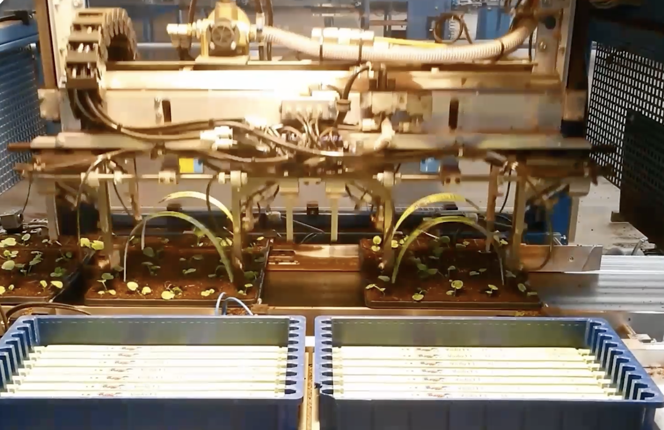 Automatische toepassing voor handgrepen op packs voor perkplanten.