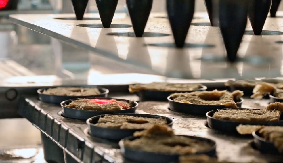 Zodra een dienblad klaar is, kan het handmatig van de tafel op de onderste transportband worden geduwd. De medewerker kan een nieuwe tray pakken, die ondertussen op het bovenste niveau wordt geplaatst, ervan uitgaande dat er voldoende externe toevoer is. Verwerkte trays verlaten de kleeflijn. De manual sticking line kan worden voorzien van registratiesoftware, waardoor de individuele productiviteit kan worden bewaakt.