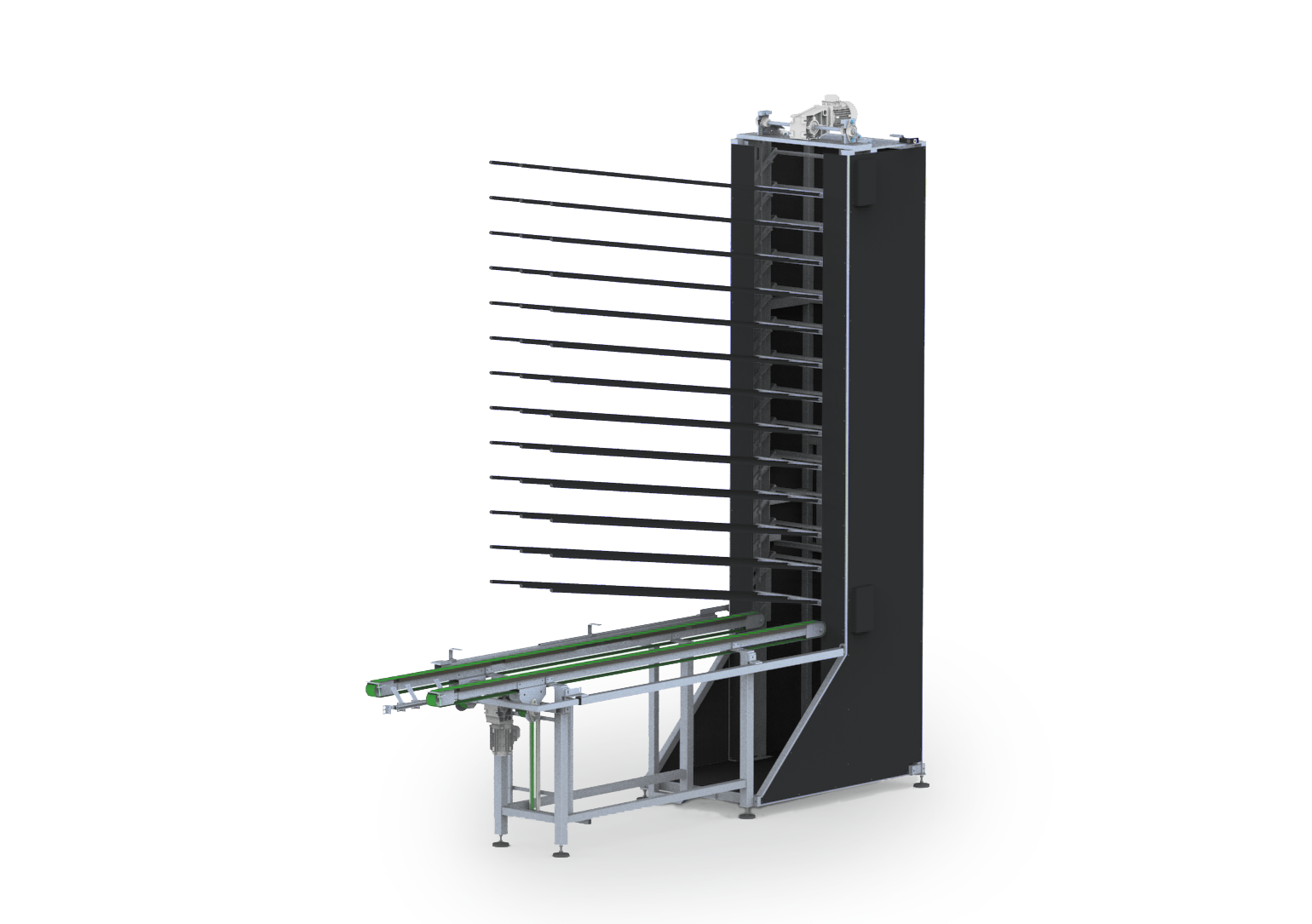 In de verwerkingsruimte biedt de MegaFlowerBuffer een indrukwekkende capaciteit van 100 tot 200 bossen. Bloemen worden onbeschadigd opgeslagen en teruggestuurd wanneer de aanvoer uit de kast vertraagt. Het systeem voegt flexibiliteit toe aan het oogstproces en kan ook worden gebruikt voor het sorteren en bossen van bloemen.