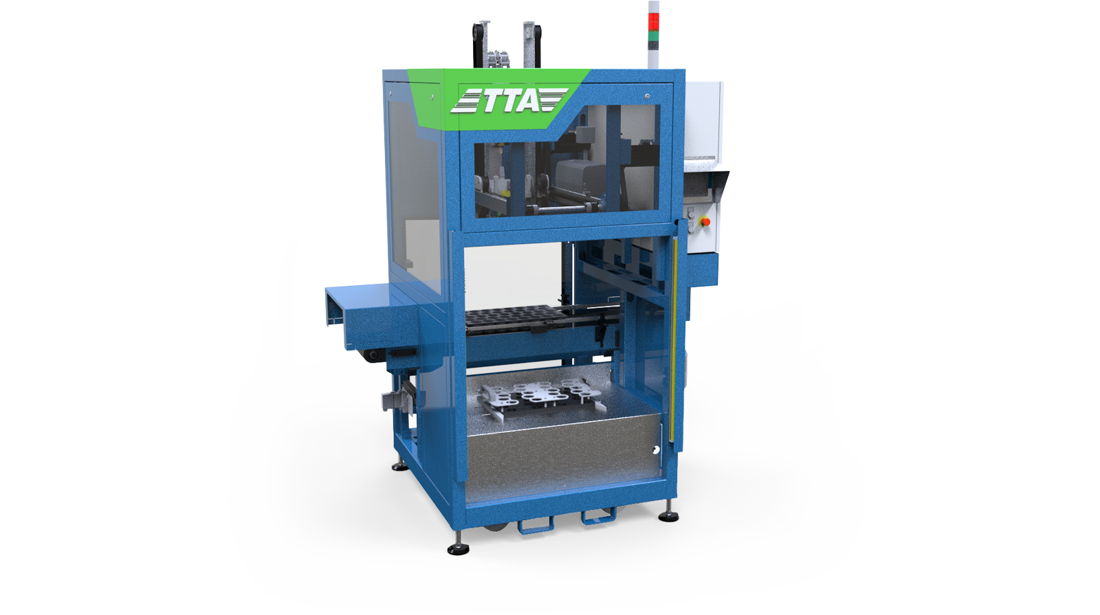 Een compacte machine voor het snel en nauwkeurig ontstapelen van potten.