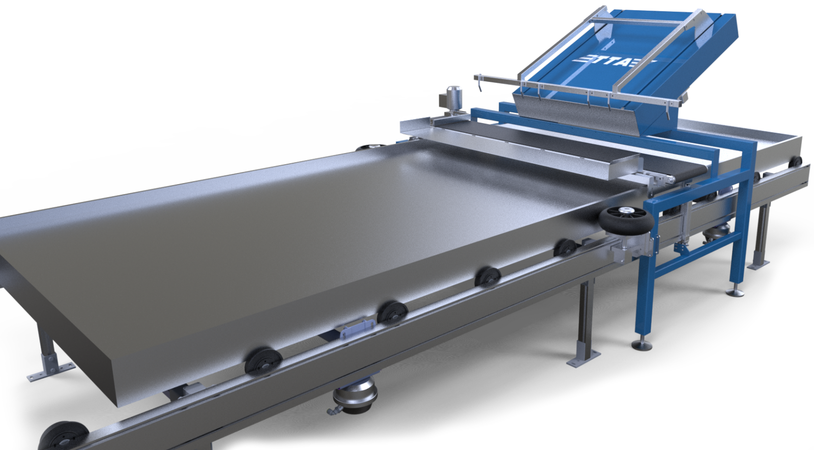 De TLF is een lader voor trays en/of flats op trolleys. Onder de TLF wordt een verrijdbare tafel of trolley geplaatst.