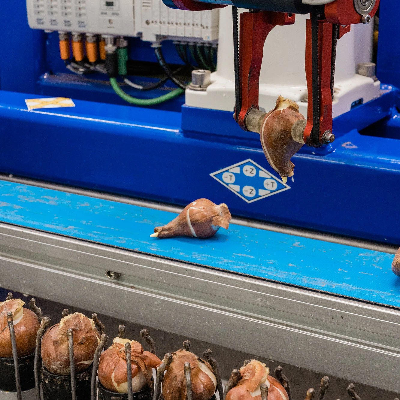 Bij TTA-ISO ontwikkelen we geavanceerde automatiseringsoplossingen die deze uitdagingen het hoofd bieden. Met innovaties zoals het Bulb Planting System, dat bollen automatisch in kratten plaatst, en de BulbPacker, die bollen uit kratten haalt en ze positioneert voor verwerking, elimineren we enkele van de meest tijdrovende en arbeidsintensieve stappen in de bollenproductie.