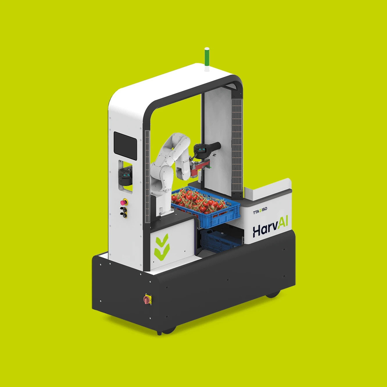 De HarvAI oogstrobot integreert nauwkeurige rijpheidsdetectie, intelligente navigatie en naadloze compatibiliteit met bestaande kasinfrastructuur. Met een cyclustijd van 450 trossen per uur en de mogelijkheid voor één operator om toezicht te houden op meerdere oogstrobots, maximaliseert hij de efficiëntie en minimaliseert hij de schade aan het gewas.